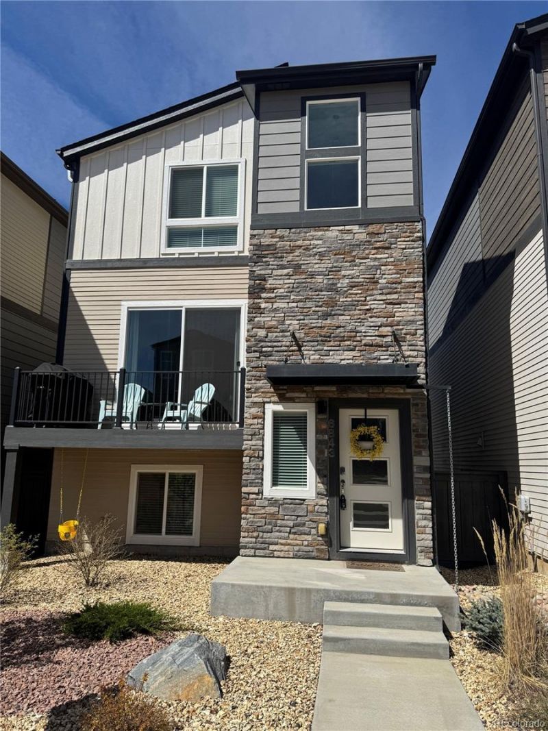 NO Metro District! Designed for easy up-keep with a perfect blend of style, functionality, and location. This beautifully designed home offers 3 bedrooms and 3 bathrooms with a layout that truly works for everyday living. Upstairs, the spacious primary suite features a generously sized bathroom and walk-in closet. An additional bedroom, full bath, and convenient laundry closet?with washer and dryer included?complete the upper level. The lower-level bedroom offers flexibility and can easily serve as a home office, playroom, or workout space. The main level showcases an open-concept living area designed for both comfort and entertaining. The kitchen stands out featuring quartz countertops, a large island, walk-in pantry, stylish backsplash, and a chefs dream gas stove. The open great room has a built-in electric fireplace AND custom bookshelves on each side! Step outside to the deck where a built-in gas line makes grilling effortless. Enjoy central A/C for summer comfort, thoughtful upgrades throughout, and a garage service door for added convenience. The home is fully landscaped, and common areas are professionally maintained ~ truly move-in ready. A radon mitigation system is already in place for peace of mind. Built by Classic Homes, this Smart package includes a smart thermostat, Alexa hub, and MyQ garage door opener?giving you control and security from anywhere. Ideally located just minutes from the shopping, dining, and amenities near Powers and Woodmen/Dublin, this home offers convenience without compromise. Everything is done?just move in and use this as an easy home-base for all of your Colorado adventures! Lets get you inside so you can get OUTSIDE to play! Call today!