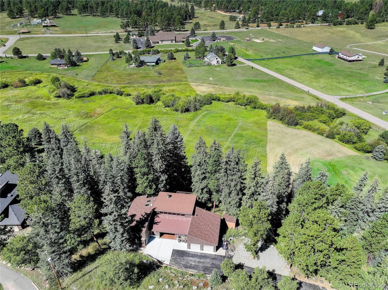 MIDCENTURY MODERN MOUNTAIN HOME! Beautifully remodeled 4 bed plus office/den, 4 bath, 4,225 sq ft home in the coveted & convenient Evergreen Meadows neighborhood. Private, wooded 2 acre property with seasonal creek & lovely meadow & Turkey Creek views. Light & bright open concept home with main floor living, large loft & walk-out basement. Many custom & designer touches make this beautiful home unique & charming. Fantastic renovations including hardwood floors, staircases & railings, kitchen, 1/2 bath, fireplaces, wood beams, shelving, laundry, office, wood walls & large deck. Worry free living with new & newer upgrades including Anderson windows, Generac whole house generator, well, furnace, water treatment system & hot tub. The living room showcases designer fireplace & ample windows to take in the views. Gorgeous gourmet kitchen with custom cabinets, white quartz, waterfall island, designer tile, wine fridge, subzero refrigerator & wolf stove. Open floorplan flows into dining room & onto large NEWLY PAINTED deck for entertaining & enjoying the views. Main floor primary suite with deck access & 5 piece ensuite bath complete with jetted tub & walk-in closet. Additional 2 bedrooms, full bath, den, powder room & laundry room (washer & dryer included) are conveniently located on the main floor. The open loft with custom fireplace is the perfect game room with pool table included. Office with built-ins (could be 5th bed) also located upstairs. The walk-out basement is great for multigenerational living. The family room features custom built-in shelving & access to lower patio. Lower bedroom (closet in bath), full bath & versatile bonus room for gym, crafts or storage complete the lower level. Fenced yard for your furry friends. Storage shed & newer hot tub. Attached 2 car heated garage. 3 bed septic - 6 people.County maintained roads & school bus route. Enjoy peaceful, private mountain living with easy access to 285, 73, shopping, restaurants & schools!